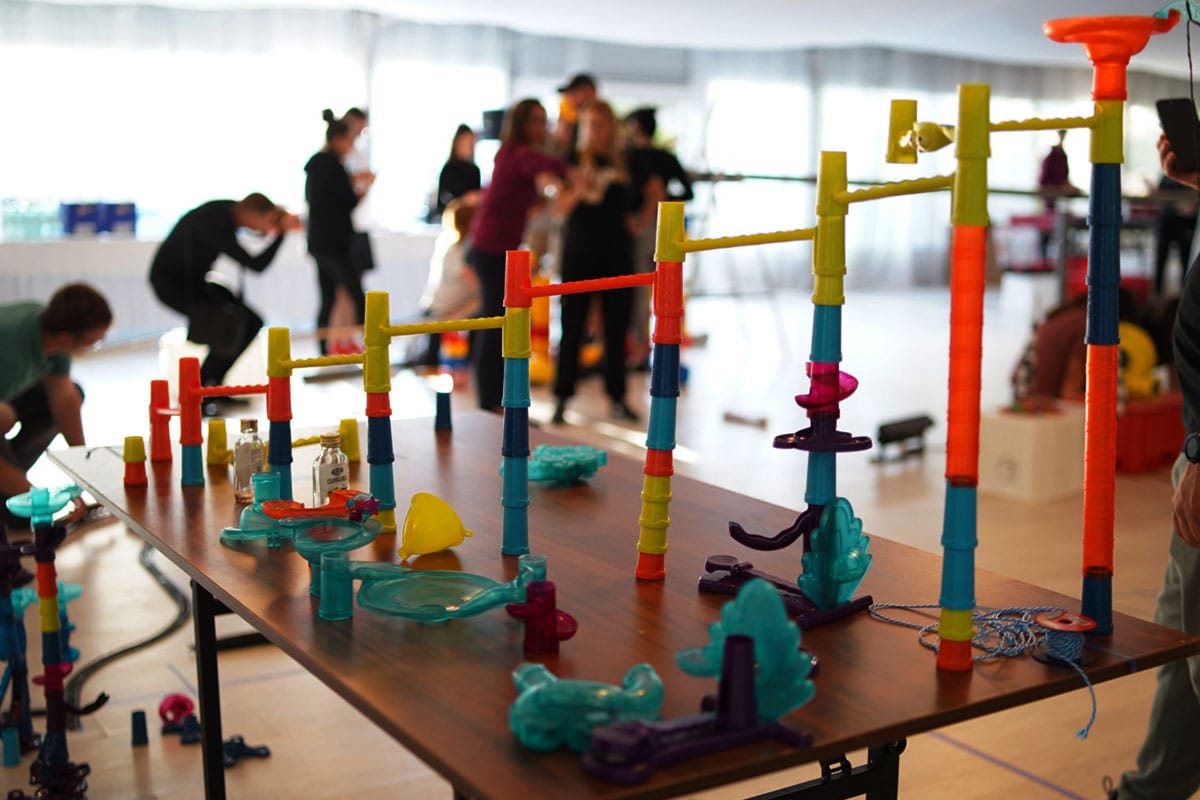 Zespoły budują połączoną konstrukcję, w której każdy element ma znaczenie, niczym w maszynie Rube’a Goldberga.
